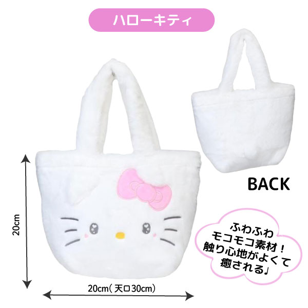 サンリオキャラクターズ ふわふわ ファー 手提げバッグ 1個 かわいい もこもこ トートバッグ 全5種から選択 ダイカット キャラクター 雑貨 グッズ フェイクファー 秋冬 ミニトート かばん おでかけ イベント 小学生 子ども 大人 プレゼント キティ マイメロ