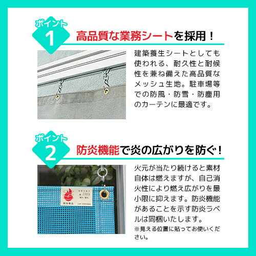 メッシュシート 防風 防炎 屋外用 サイズオーダーカーテン【TS03】1類メッシュ [幅182〜273cm][丈251〜300cm] カーポート 風対策 防雪 防塵 埃よけ 飛散防止 出入口 目隠し メッシュシート ターポスクリーン 土木資材 工業資材 メッシュカーテン シートカーテン