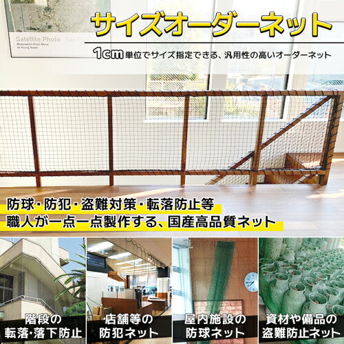 転落防止ネット 落下防止ネット 安全ネット サイズオーダー ネット網 防炎 [440T(400D)/40本/25mm目] [幅301〜400cm][高さ101〜200cm] 無結節 角目 ポリエチレン 屋内 転落防止ネット 落下防止ネット 安全ネット 店舗防犯 防犯ネット 防球ネット ゴルフ防球 野球防球 間仕切