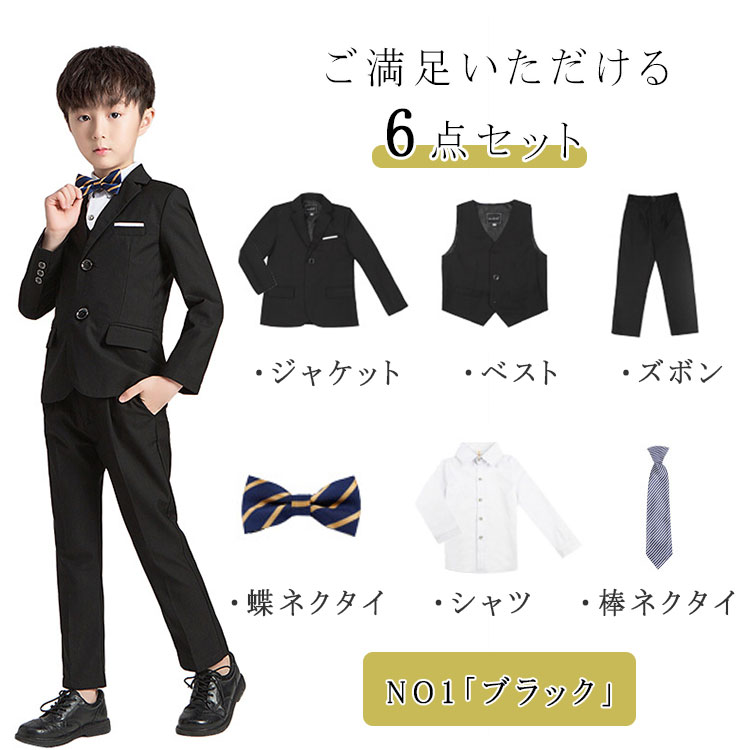 【 一部翌日発送 】【最大20%OFFクーポン】 フォーマル スーツ キッズ 入学式 卒業式 6点セット 子供服 スーツ セットアップ ジャケット ベスト ズボン シャツ 蝶ネクタイ キッズフォーマル シングルボタン 入園式 卒園式 七五三 パーティー 結婚式 ピアノ発表会