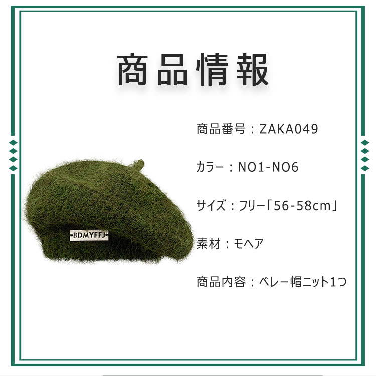 商品詳細 ブランド名 BlueRose fashion street 商品名 帽子 ベレー帽 冬 レディース ニット ニットのベレー帽 秋冬 レディースベレー帽 柔らか 滑らか 暖か 防寒 寒さ対策 ふわふわ 高級感 オシャレ エレガント 通勤 通学 旅行 ちょっとお出かけ 散歩 カジュアル ガールズ キッズ女の子 ジュニア 女子 種別名称 ベレー帽ニット1つ サイズ フリー「56-58cm」 カラー NO1-NO6 商品メリット ・暖か 保温 防寒 寒さ対策。 ・通勤 通学 旅行 散歩 ちょっとお出かけ カジュアル。 ・母娘 姉妹 お揃い。 ご使用上の注意 ●お肌に合わない場合や、かぶれ・かゆみ等を感じた場合はご使用を おやめください。●メーカーの生産時期や生産ロットにより、同じ商品でも色の出方(濃淡)や柄が多少異なる場合がございます。また、撮影時の光の加減やお客様がお使いのモニターの影響などにより、商品紹介画像の色と実際の商品の色が若干異なる場合もございます●サイズは測り方により誤差が生じる場合がございます。同じサイズでも色やデザインによって若干大きさが異なる場合もございます。●本来の目的以外でのご使用はおやめください。 素材 モヘア 生産国 MADE IN CHINA