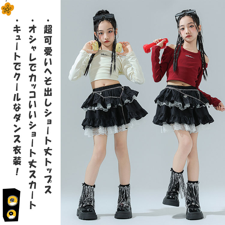 【最大20%OFFクーポン】 ダンス衣装 キッズ 女の子 上下セット 長袖 ショート丈トップス へそ出し ミニスカート 送料無料 ジュニア ガールズ キュート オシャレ カッコいい インスタ映え 魅力的 ダンス 衣装 ブレイクダンス ヒップホップ ジャズ プレゼント