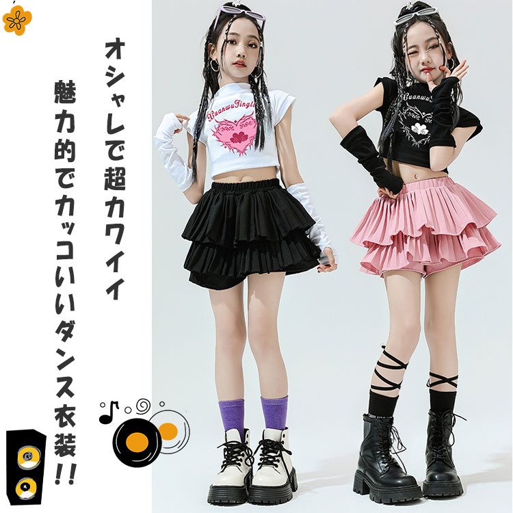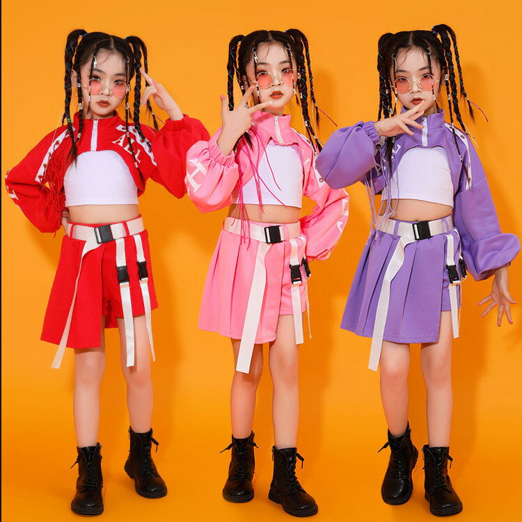 【最大20%OFFクーポン】ダンス衣装 キッズ 女の子 3点セット 長袖 ショート丈トップス へそ出し アームカバー ミニスカート付き短パン 送料無料 ジュニア ガールズ キュート オシャレ カッコいい インスタ映え 魅力的 ダンス 衣装 ブレイクダンス ヒップホップ
