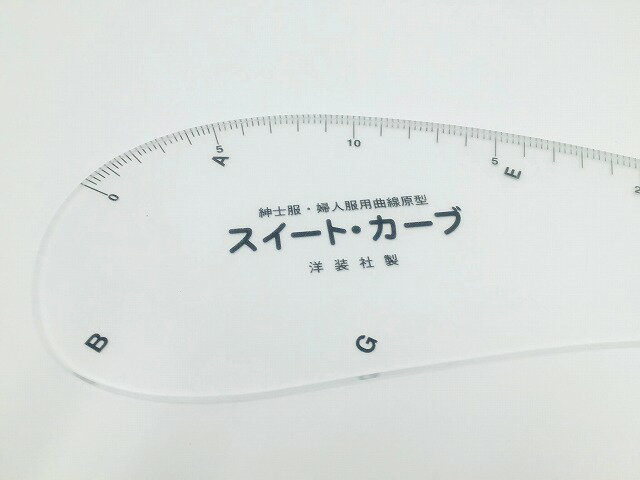 直線以外のすべての複雑なカーブの作図可能■ 商品説明スイートカーブ尺 直線以外のすべての複雑なカーブの作図可能 生地裁断用、補正用にも幅広く対応可能な商品です。 どんなカーブも楽にこなせる 袖下線、脇線、すそ線などに使用します 材 質:透明塩化ビニール サイズ:約60cm 約縦(10cm・3cm)×長さ66cm 文 字:片面印刷 スイートカーブ定規 ※表面の傷防止のフィルムが貼ってあります。剥がしでご使用ください。 製図道具 パターン パタンナー 定規 カーブ定規 洋裁道具 ソーイング