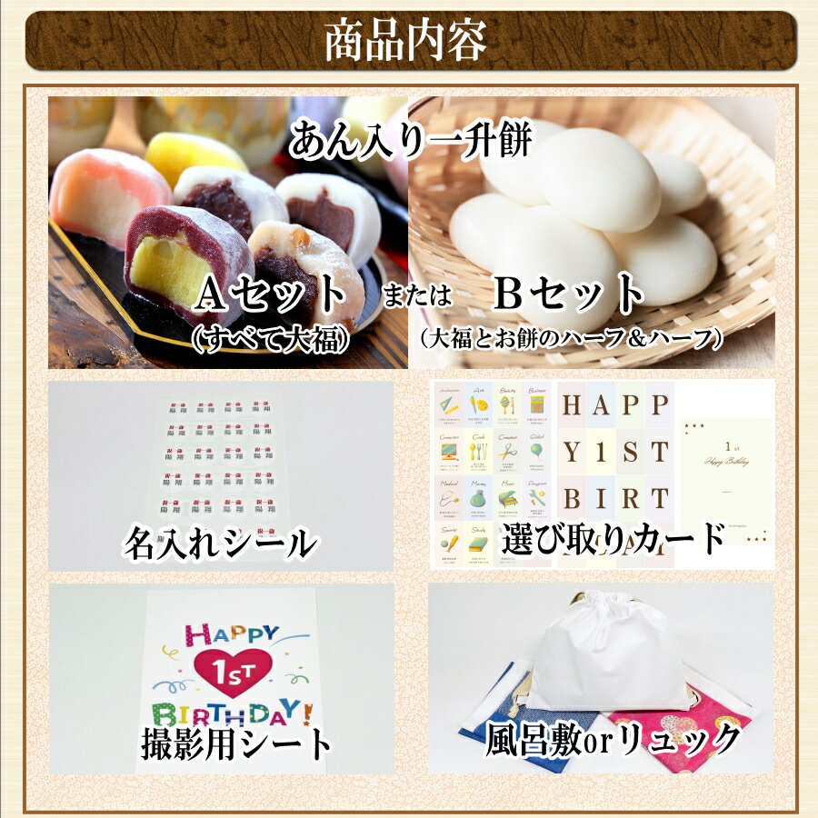 【RN】あん入り一升餅・名入れ無料★あんこ・あん餅・小分け★1歳お誕生日(御祝)★背負い餅・一生餅★プレゼント付★一升餅(1升餅)セット 米