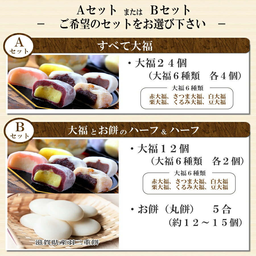 一升餅の関連キーワード【一升餅】 一升餅・一生餅・一升もち・背負い餅・背負いもち・踏み餅・踏みもち・立ち餅・転ばせ餅・誕生餅・しょい餅・しょいもち・誕生もち・1歳・誕生日・お誕生日・御祝・お祝い・紅白餅・紅白もち・初誕生・満1歳・祝餅・祝い餅・一升餅(1升餅)・1升のお餅・1升餅・美味しい一升餅・めでたい一升餅・米寿祝い一升餅・記念一升餅・選び取り一升餅・風呂敷一升餅・名入れ一升餅・名前入れ一升餅 一升餅の関連キーワード【一升餅】 一升餅・一生餅・一升もち・背負い餅・背負いもち・踏み餅・踏みもち・立ち餅・転ばせ餅・誕生餅・しょい餅・しょいもち・誕生もち・1歳・誕生日・お誕生日・御祝・お祝い・紅白餅・紅白もち・初誕生・満1歳・祝餅・祝い餅・一升餅(1升餅)・1升のお餅・1升餅※当店の全商品におきましては、健康被害が報道されている小林製薬株式会社の「紅こうじ原料」は一切使用しておりませんのでご安心下さい。 ◎大福 ・原材料 【赤大福】 白こしあん(砂糖、白いんげん豆)、餅米粉、砂糖、 麦芽糖、食塩/ 加工でんぷん、ソルビット、酵素(小麦・大豆由来)、 pH調整剤、紅こうじ色素(一部に小麦、大豆を含む) 【さつま大福】 芋あん(生餡、砂糖、さつまいも、乾燥マッシュポテト、食塩)(国内製造)、餅米粉、砂糖、麦芽糖、食塩/加工でんぷん、ソルビット、酵素(小麦・大豆由来)、pH調整剤、香料、クチナシ色素(一部に小麦、大豆を含む) 【白大福】 こしあん(砂糖、小豆)、餅米粉、砂糖、麦芽糖、食塩/ 加工でんぷん、ソルビット、酵素(小麦・大豆由来)、pH調整剤(一部に小麦、大豆を含む) 【栗大福】 栗あん(いんげん豆生あん、砂糖、栗甘露煮)(国内製造)、餅米粉、砂糖、麦芽糖、黒米粉/加工でんぷん、ソルビット、酵素(小麦・大豆由来)、pH調整剤、クチナシ色素、香料(一部に小麦、大豆を含む) 【くるみ大福】 つぶあん(砂糖、小豆)(中国製造)、餅米粉、砂糖、麦芽糖、くるみ、醤油(小麦・大豆を含む)/加工でんぷん、ソルビット、酵素(小麦・大豆由来)、pH調整剤(一部に小麦、大豆、くるみを含む) 【豆大福】 つぶあん(砂糖、小豆)、餅米粉、砂糖、麦芽糖、赤えんどう豆、食塩/ 加工でんぷん、ソルビット、酵素(小麦・大豆由来)、pH調整剤(一部に小麦、大豆を含む) ・内容量 1個 約70~80g ・保存方法 -18℃以下の冷凍庫にて保管 ・使用方法 常温解凍(20℃)約1~2時間 ・消費期限 2ケ月以上(解凍後2日間) ◎お餅(小餅) ・原材料 もち米(滋賀県産羽二重もち)、澱粉 ・内容量 1個 約70~80g ・保存方法 -18℃以下の冷凍庫にて保管 ・使用方法 常温解凍(20℃)約1~2時間 ・消費期限 2ケ月以上(解凍後冷蔵保存2日間)