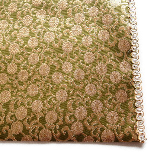 サイズ25号 38.7×60cm両端にひだ(リリヤンが付いてます) 【配送無料】ポスト投函にてお送りします。2-3日程度 金襴の経机掛け(経机敷き)格式が高い良い金襴です。 裏地も白色のキレイな生地を利用しております。 日本製の高岡神仏具、富山の高岡から直送いたします。 高級品の金襴糸一本一本織り込んだ物で、柄に立体感を出します。 経机の防火マットやキズ防止としても使えますが使い方はいろいろ。 テーブルクロス、テーブルマットとして豪華に食卓を彩ります。お茶を飲む時のマットなど和を演出できます。カワイイ模様や豪華な模様も沢山あります。グレー、茶、金色、白、赤色の生地に金糸を使い沢山のマルチカラーで色のバリエーションが豊富。国産サイズ25号 38.7×60cm両端にひだ(リリヤンが付いてます) 【配送無料】ポスト投函にてお送りします。2-3日程度 金襴の経机掛け(経机敷き)格式が高い良い金襴です。 裏地も白色のキレイな生地を利用しております。 日本製の高岡神仏具、富山の高岡から直送いたします。 高級品の金襴糸一本一本織り込んだ物で、柄に立体感を出します。 経机の防火マットやキズ防止としても使えますが使い方はいろいろ。 テーブルクロス、テーブルマットとして豪華に食卓を彩ります。お茶を飲む時のマットなど和を演出できます。カワイイ模様や豪華な模様も沢山あります。