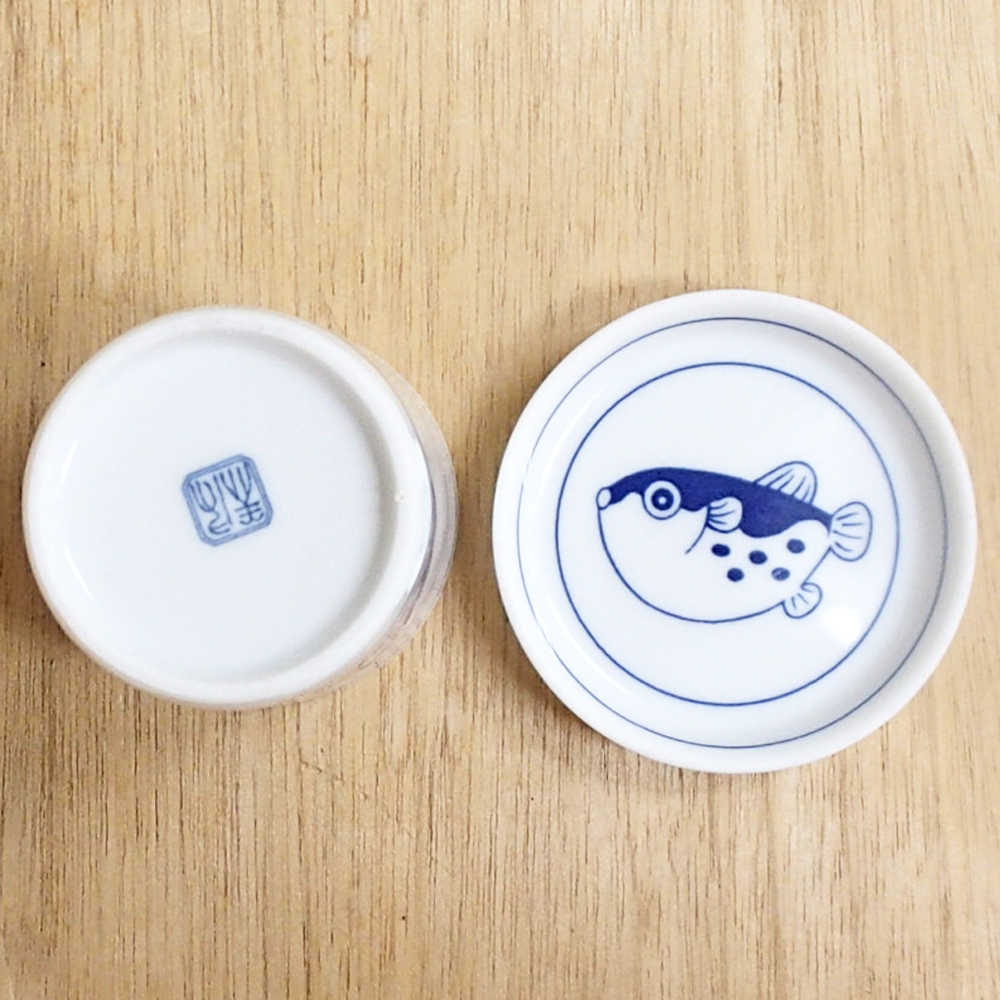 【波とフグの絵柄】ひれ酒カップ 180ml(1合サイズ) ふぐひれ酒を楽しむのにぴったりの、美濃焼の酒器です。 白磁ならではの清潔感のある白地に、紺色の波模様とフグの絵柄が描かれた上品なデザインで、和の趣と遊び心を感じさせます。 容量は約180ml(1合)で、熱燗・ぬる燗にちょうど良いサイズ。 電子レンジや食洗機の使用も可能なので、ご家庭でも手軽に本格的なひれ酒を楽しめます。 作り方はとても簡単。 熱々のお酒に焼き立てのひれを浸し、さらに3分ほど蓋をして蒸らします。 こうすることで、お酒にひれの香ばしい香りと旨味がじっくりと溶け出し、豊かな味わいのひれ酒が完成します。 冬の夜にふぐのひれを炙り、香ばしい香りとともに味わう一杯。 そんな日本ならではの酒の楽しみを、気軽に味わえるアイテムです。 日本酒党の方への贈り物や、飲食店での提供用にもおすすめ。 ◆ 商品情報 サイズ カップ:口径 6.5cm × 高さ 9cm / 容量 満水 180ml フタ:直径 8cm × 高さ 1.5cm 材 質:磁器 製造国:製造国:日本製(美濃焼) 電子レンジ 食洗機:使用可