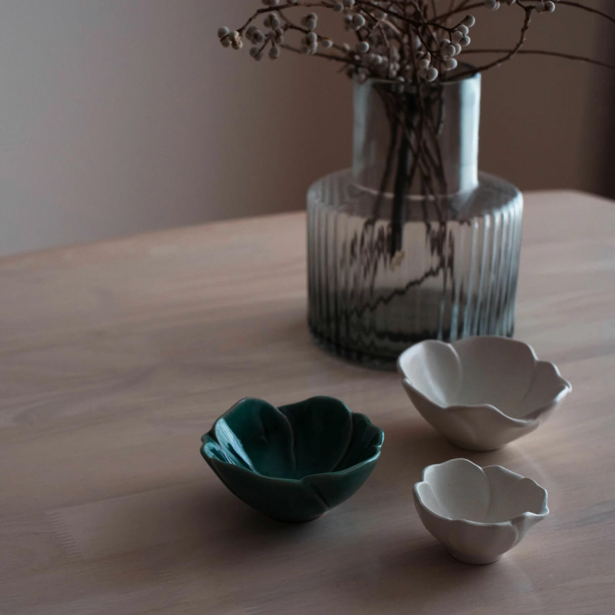 スタジオエム 山茶花 2.5寸 小鉢 7.5cm STUDIO M スタジオm マルミツポテリ 豆皿 器 ピンク 緑 グリーン ホワイト 輪花 花形 食器 器 お皿 国産 日本製 和食器 50cc 無地 かわいい シンプル 誕生日 ギフト 結婚祝い 新居祝い 新築祝い プレゼント ラッピング 宅配便指定