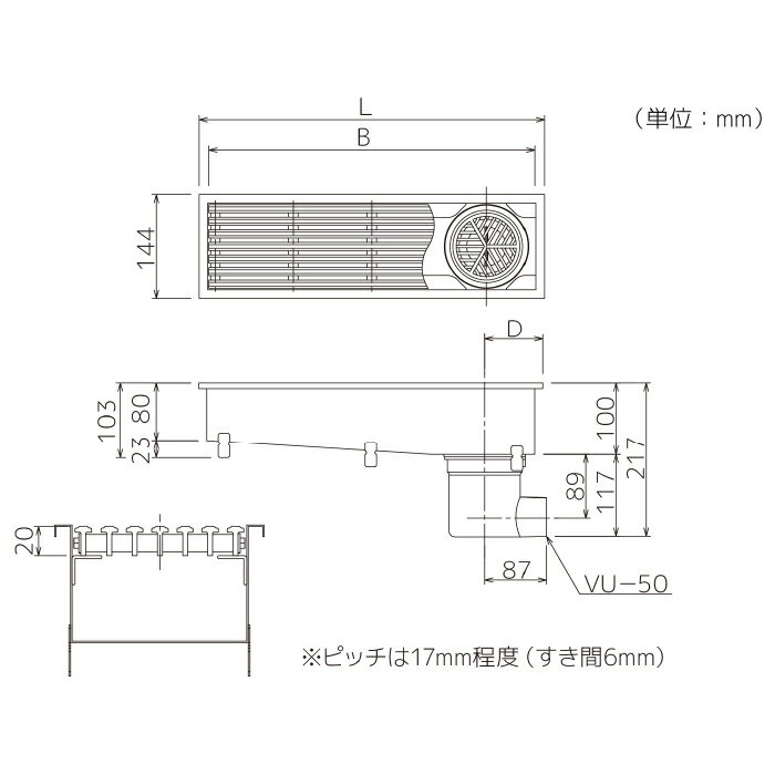 排水ユニット 屋内外兼用樹脂グレーチング 深型 非防水横引き