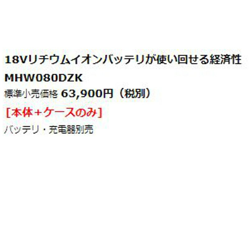 【25日迄 1,000円クーポン配布】マキタ MHW080DZK 充電式高圧洗浄機 36V(18V×2本使用) (本体のみ・ケース付) コードレス ◆