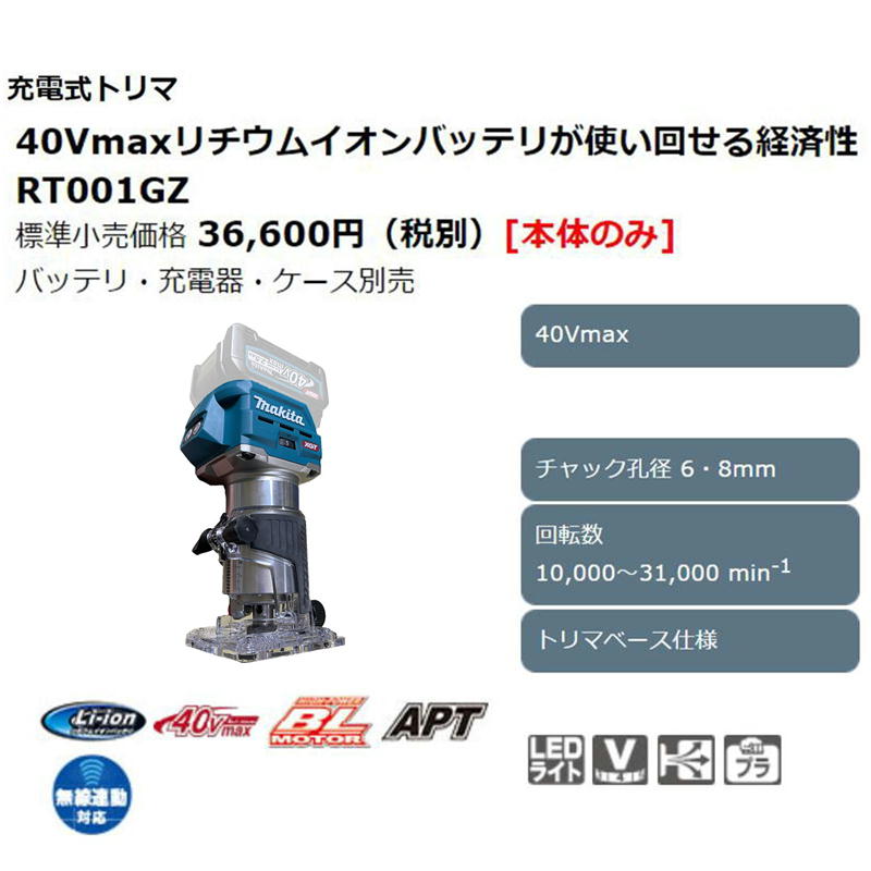 \楽天ランキング入賞/ マキタ RT001GZ 充電トリマ 40Vmax トリマベース仕様 トリマベース仕様 本体のみ(充電器・バッテリー別売) (チャック孔径:6mm・8mm対応)コードレス ◆