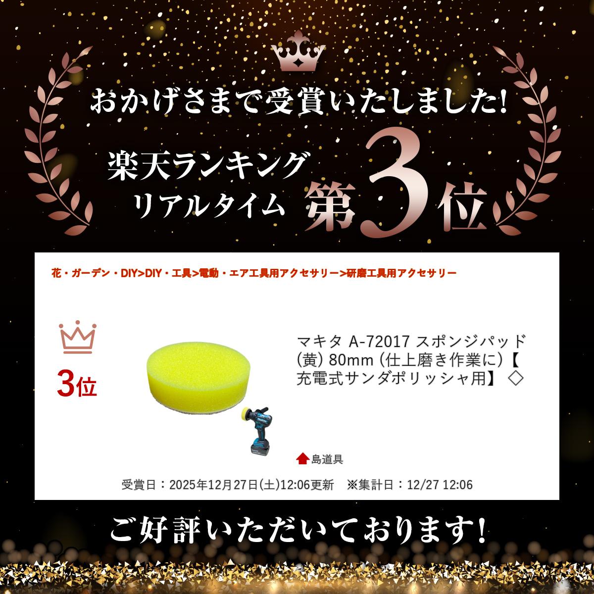\楽天ランキング入賞/ マキタ A-72017 スポンジパッド(黄) 80mm (仕上磨き作業に)【充電式サンダポリッシャ用】 ◇