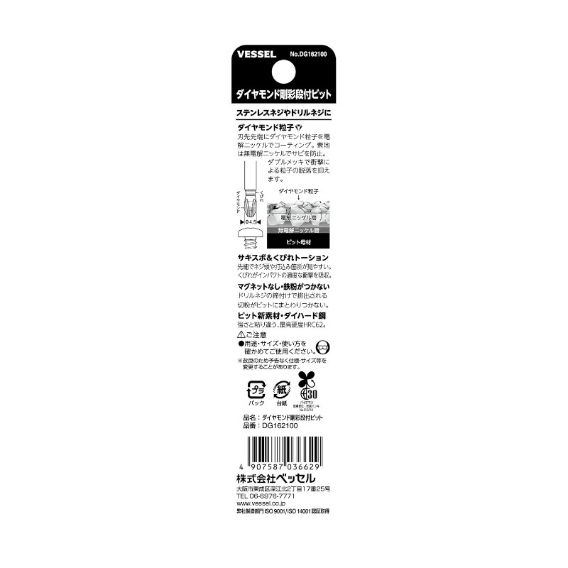 【25日迄 1,000円クーポン配布】VESSEL(ベッセル) No.DG162100 ダイヤモンド剛彩段付ビット(+2×100) レッド ◇