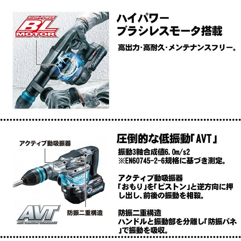 【11日迄 1,000円クーポン配布】マキタ(makita) HM001GRMX 充電式ハンマ 40Vmax 4Ah セット品(本体・BL4040×2個・充電器) (SDSマックスシャンク) コードレス