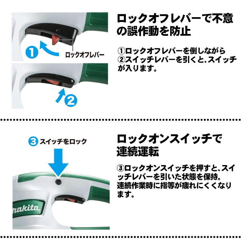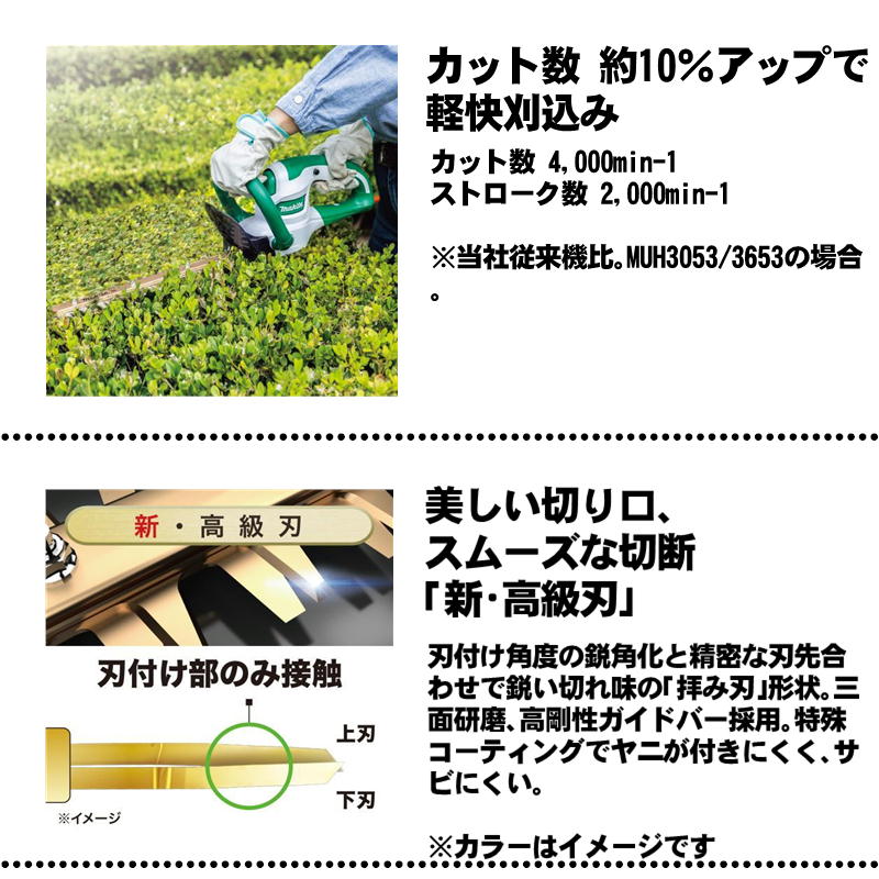 商品仕様 高速カットで軽快刈込み、 「新・高級刃」シリーズ登場 MUH3053:刃物長300mm MUH3653:刃物長360mm MUH4053:刃物長400mm MUH4653:刃物長460mm 別売品 シャーブレード A-75770 300mm A-75786 360mm A-75792 400mm A-75801 460mm チップレシーバ A-72534 300mm用 A-72540 360mm用 A-72556 400mm用 A-72562 460mm用 A-42598 腰用コードフック A-42254 腕用コードフック A-63672 ロックコネクタ付 10 m ツナギコード 検索ワード Makita 正規店 純正 正規品 新品 未使用品 MUH3053 MUH3653 MUH3002 MUH3502 MUH4053 MUH4653 MUH4002 MUH4602 MUH2651 MUH2601 MUH2301 MUH450 MUH650 メーカー希望小売価格はメーカーカタログに基づいて掲載しています