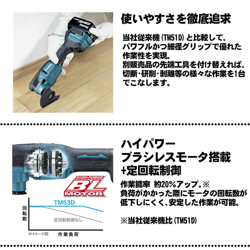 【25日迄 1,000円クーポン配布】\楽天ランキング入賞/ マキタ(makita) TM53DZ 充電式マルチツール+トートバッグ 本体のみ(充電器・バッテリー別売) ◆