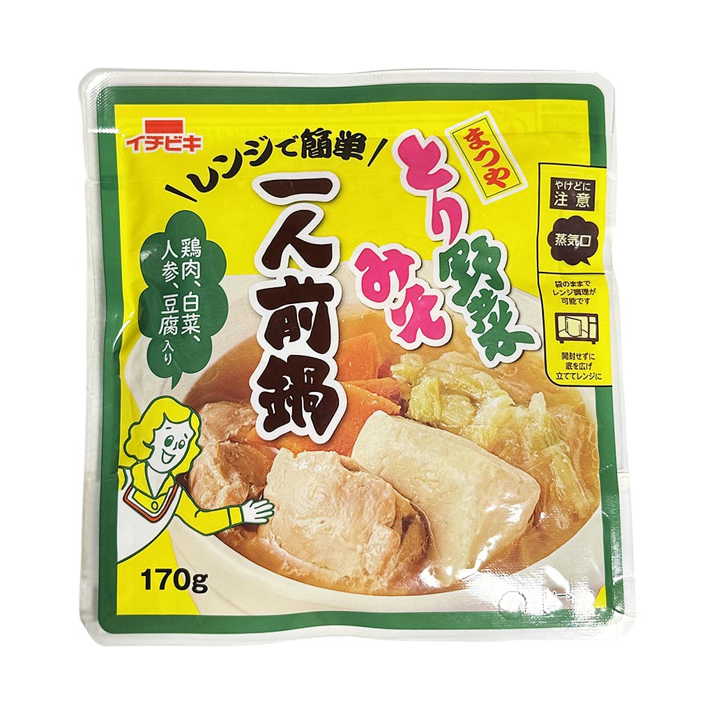 まつや とり野菜みそ 一人前鍋 170g | イチビキ とり野菜 鍋の素 鍋スープ 具材入り 石川 金沢 レンジ レトルト食品 一人暮らし 仕送り