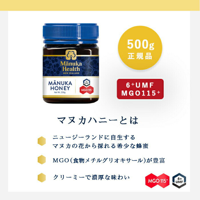 【正規品】マヌカハニー 500g ( MGO115+ UMF6+ ) おまけ付き manuka health はちみつ 蜂蜜 健康 マヌカ蜂蜜 のど ニュージーランド産 体調管理 manuka honey ギフト お歳暮