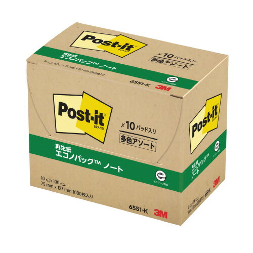 スリーエム ジャパン ポストイット再生紙カラーキューブノート 50×50mm450枚5色(YGWBP) CPRP-Y-22SE グリーン購入法適応 エコマーク