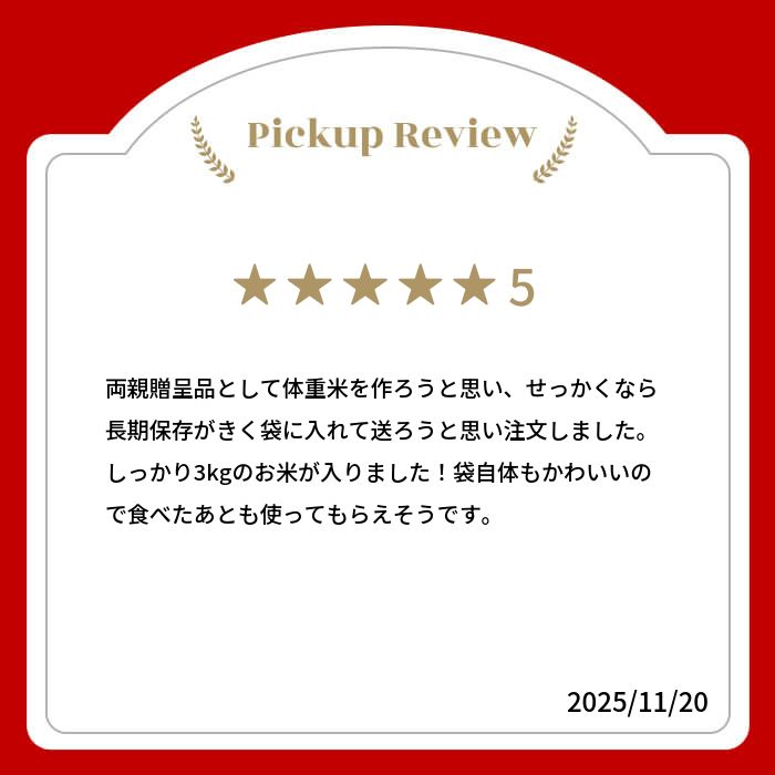商品説明商品名極お米保存袋 K737 サイズサイズ:約300×300mm 袋の厚さ:約0.09mm 耐冷温度:約0℃ 容量:約3.6L 材質ポリエチレン、PET、アルミニウム 原産地日本 商品詳細<全米販・お米マイスター徳永真悟氏共同企画> お米のプロと開発した、お米をおいしく保存できる袋です。 光と空気を遮断して、お米の鮮度保持を極めました。 「お米は生ものと同じ」正しい保存でおいしさ長持ちします。 ●ダブルジッパーで密封! ●逆止弁付きでお米が酸化しにくい! ●マチ付き袋なので省スペースかつ冷蔵庫の中などで自立して保存できる! 注意事項※水洗いしないでください。逆止弁の機能が損なわれる可能性があります。 ※火のそばや高温になるところには置かないでください。 ※本来の用途以外でのご使用はおやめください。 ※冷凍庫で保存しないでください。 ※ジッパー部に汚れ・米のカス等を挟んだまま閉めると、密封されず破損の原因となります。 ※繰り返し使用可能。汚れは除菌シートなどでふき取ってください。 カラーホワイト ブラック ブランドマーナ MARNA 検索用キーワード極お米保存袋 K737 米櫃 米びつ ライスストッカー ライスボックス 米 ストッカー 鮮度 炊飯 食品 キッチン お米 保存 冷蔵庫 小分け ホワイト ブラック マーナ 2枚セット 日本製 密閉保存容器 チャック付き ジッパー コンパクト 米袋 お米保存容器 密閉ケース 便利グッズ 新米 雑穀米ふっくらとした食感、ほのかな甘味。 お米のおいしさは、鮮度で決まる。 生米は野菜や肉と同じ生鮮食品です。乾燥や酸化、湿気に弱く、 保存場所も10℃以下に安定している冷蔵庫が最適とされています。 「極 お米保存袋」はそんなお米を、 鮮度を保ちながら保存するために開発されました。 空気や光を遮断。お米の量に合わせてかたちを変えられるから、 冷蔵庫の中にもしまいやすい。 保存方法を変えるだけで、おいしさに違いが出ます。 ダブルジッパーでしっかり密封。光・空気・臭いを通さずお米の鮮度を保ち、おいしく保存できます。 空気を抜き、逆戻りを防ぐ逆止弁付き。お米が酸化しにくい構造です。 お米の量に合わせて省スペースで収納できる袋形状。マチ付きなので、冷蔵庫の中で自立させて保存できます。 1枚で約3kgのお米を保存できます。 その他サイズ・セット一覧 お米+野菜保持袋セット こちらもオススメ スリムタイプの米びつ ご飯を美味しく保存できる容器 お米と一緒に炊くだけでふっくら ボウルと水切りざるが一体化 余分な水分をほどよく自然排出 40分割に簡単にカット