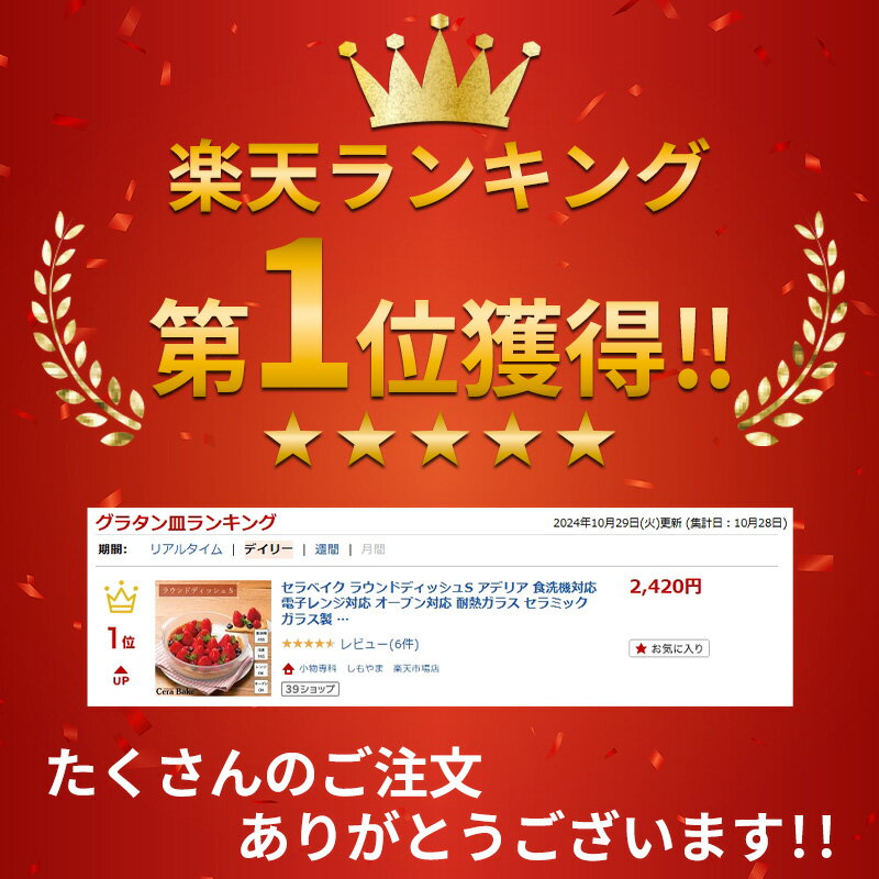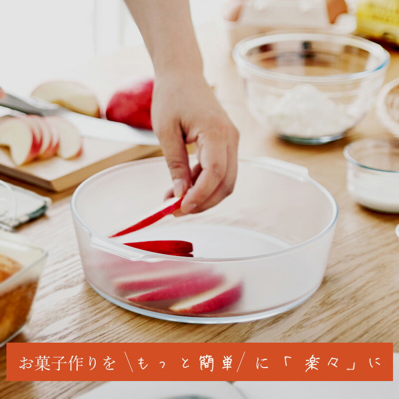商品説明商品名セラベイク ラウンドディッシュS サイズ幅約φ21cm×高さ6cm 持ち手含む幅:23cm 内寸:約幅20cm×高さ5.5cm 容量:1500ml 材質ガラス(セラミックコーティング) 商品詳細<セラベイクとは> 特殊コーティングで驚くほどこびりつきにくい耐熱ガラス調理器。だからバターもシートも不要で洗い物の手間も省けます。 ・最大の特徴はこの「スルッ」と感です。特許取得の独自コーティングにより、生地や料理が驚くほどこびりつきにくいです。 ・セラベイクなら直接生地を流し込んで焼くだけ。クッキングシートを敷いたり、バターを塗ったりする面倒な手間が不要です。 ・スチール製の型とは違い、ガラス製なので調理中の中身が見えます。焼き加減が調整しやすいです。 ・調理してそのまま食卓に出せるシンプルなデザインなので、他の食器との相性もいいです。 ・オーブンからの取り出しや持ち運びに便利な取っ手付きです。取っ手は小さいので、収納時にかさばりません。 食洗機、電子レンジ、オーブン対応 注意事項※商品の製造過程で小さな傷やよごれ、しわ、形の歪みなどが生じる場合がございますが、使用上の問題はございません。 ※冷凍室に入れて使用する場合は、取り出した製品をすぐにオーブンで加熱すると、破損する場合がありますので、ご使用の際は解凍してから加熱して下さい。 ※液体を入れて冷凍室に保管すると、凍結して体積が増えることによりガラスに圧力が加わり破損する場合がありますので、液体を入れて冷凍しないで下さい。 ※使用頻度と経年によって、コーティング効力が弱化する場合がございます。予めご承知おき下さい。 ※パッケージは予告なく変更になる場合がございます。ご了承ください。 ※ご使用のモニターの明るさ等により、色の見え方が異なる場合がございます。 ※光、角度、撮影機器の演色などの理由により、色の見え方が異なる場合があります。 ※レシピよりもやや低めの温度(180度の場合170度)で焼成時間を長めにとるのが焼きやすいコツです。 ※セラベイクは冷えた油分が苦手なため、焼いた後はなるべく早く取り出してください。 ※調理後は柔らかいスポンジと中性洗剤を使い、ぬるま湯でしっかり洗ってください。 ※アルカリ洗剤、漂白剤は使用しないでください。 ※金属たわし、クレンザーなどのご使用は避けてください。 原産国ガラス加工:中国 コーティング加工:日本 メーカー石塚硝子株式会社 検索用キーワードセラベイク ラウンドディッシュS アデリア 食洗機対応 電子レンジ対応 オーブン対応 耐熱ガラス セラミック ガラス製 丸型 20cm 耐熱皿 お菓子作り タルト ケーキ グラタン皿 料理 こびりつかない 耐熱ガラス Cera Bake 丸タルト 食器 皿 おしゃれ シンプル 石塚硝子特殊コーティングで驚くほどこびりつきにくい耐熱ガラス調理器。だからバターもシートも不要で洗い物の手間も省けます。 最大の特徴はこの「スルッ」と感です。特許取得の独自コーティングにより、生地や料理が驚くほどこびりつきにくいです。 セラベイクなら直接生地を流し込んで焼くだけ。クッキングシートを敷いたり、バターを塗ったりする面倒な手間が不要です。 スチール製の型とは違い、ガラス製なので調理中の中身が見えます。焼き加減が調整しやすいです。 調理してそのまま食卓に出せるシンプルなデザインなので、他の食器との相性もいいです。 オーブンからの取り出しや持ち運びに便利な取っ手付きです。取っ手は小さいので、収納時にかさばりません。 その他サイズ・セット一覧 スクエアロースターS スクエアロースターM パウンドケーキ型 レクタングルロースター スクエアロースターMS キューブロースターM タルト型 キャットフェイスロースター オーバルロースターM/L こちらもオススメ 片手でぶれずに粉ふるい 上から目盛が見えやすい まろやかな味わいに 生地がくっつきにくい 長柄ですくいやすい 1時間で水切りヨーグルトが作れる