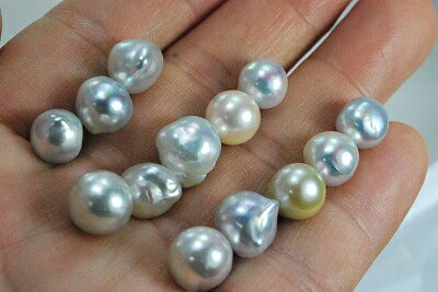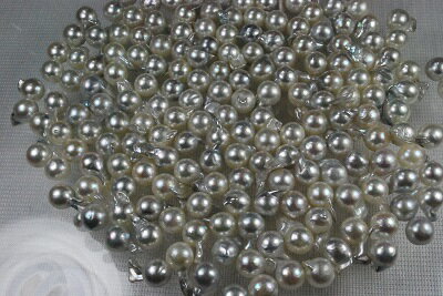 新ロット入荷!! 6−10mmセミラウンド両穴珠入荷しました、10個(1000円)50個(4500円)100個(8000円)200個(14000円) です。1個500円の珠よりは欠点はありますが合えり枡が、形はセミラウンドで巻き照りはあり色はホワイトピンクからホワイトグリーンです。画像は一番下です。 とても色照りの綺麗な8−10mmのハネ珠とバロックです。ハネ珠は干渉色が良く出ている玉が多いです。バロックは天が取れる面があって丸く見える珠やドロップ、照りの良いバロックが御座います。 6個で3000円です。 いっぱい使うお客様には7-9mmバロックのロット約10匁35個5000円、約50匁180個20000円もございます。グレードは6個3000円ほどではないですが結構綺麗です。 一番上の画像です。 新珠でハネ玉の選り抜きの上位のグレードの材料が入荷しました。選別して綺麗なものを集めました。綺麗とは私が見千恵ハネが大きく綺麗、色照りが綺麗等私が見ての基準ですが綺麗な珠です。価格は通常の1000円よりは高く、10個でホワイトが2000円、ブルーが2500円ですが1個500円に近い珠も入っているぐらい品質が良いです。選択肢を作りますのでお選びください。 無穴ですので穴あけは1個10円ほどかかります。これも選択肢を付けます。