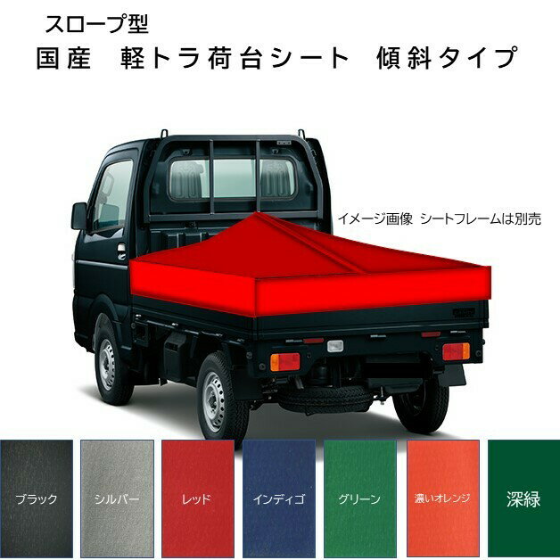 国産 軽量カラーターポリン 全7色 荷台防水カバーシ−ト 軽トラ 台形 1.9m(2.1m)×2.2m 傾斜 スロープ型 シルバー・レッド・ブラック・インディゴ・グリーン・濃いオレンジ・深緑 ゴムロープ付