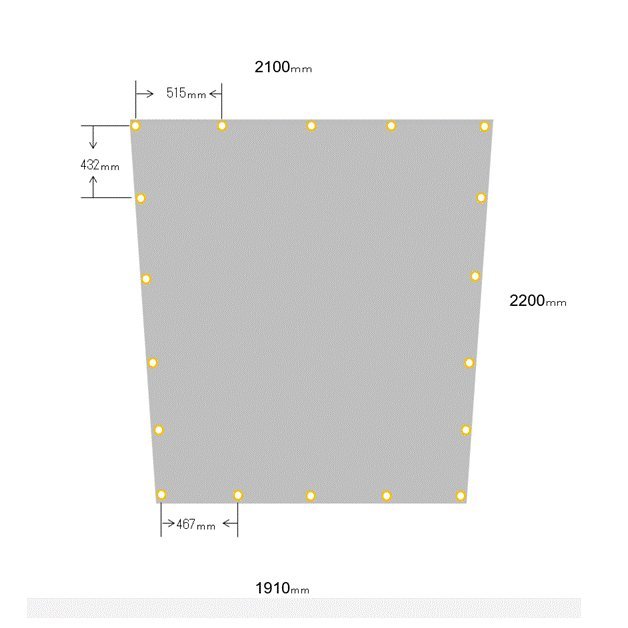 国産 軽量カラーターポリン軽トラシート 荷台フレーム付 台形 傾斜 スロープ型1.9m(2.1m)×2.2m 7色 荷台シートフレーム付セット 荷台防水カバーシ−ト
