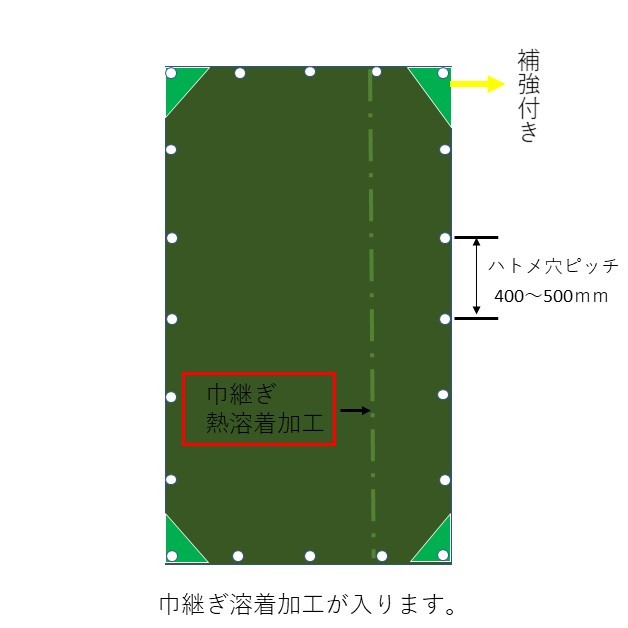 商品情報サイズ幅2.2m〜3.0m×3.2m〜4.0m材質ビニロンエステル色 ODグリーン(深緑)ハトメ真鍮 外径18.9mm 内径9.6mm厚み0.6mm付属品ゴムロープ 13mm幅 15m 1本生産国日本製注意事項車の年式、車種によって荷台寸法が異なりますのでご注意下さい。実際に車の荷台寸法を計測した上でご購入下さい。お使いのモニターの発色具合によって、実際のものと色が異なる場合がございます。オーダーメイド 国産厚手トラックシート 2t車セミロング用 4隅補強付 2.2m〜3.0m×3.2m〜4.0m ビニロンエステルODグリーン ゴム付 ストロングトラック荷台防水カバ−シ−ト 強度抜群のトラックシートです!完全防水!オーダーメイドでピッタリ! 2t車セミロング用 ストロングトラック荷台シート 荷台カバーストロング万能シートは、これまでの一般ビニロンの強度に加え、多目的用途に対応できるよう軽量化を実現した新しいタイプのビニロンエステルです。■国内自社工場で縫製しています■他の規格サイズも取り揃えております。 2