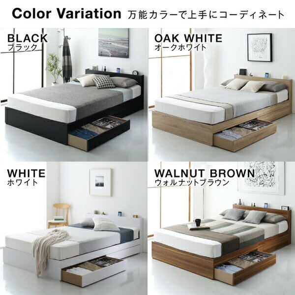 棚 コンセント付き 引き出し 2杯 収納 ベッド プレミアムポケットコイルマットレス付き セミダブル 組立設置付