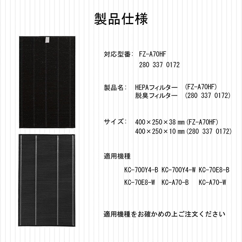 商品情報 商品番号 シャープ加湿空気清浄機対応 加湿空気清浄機交換用フィルター 〇集じんフィルター FZ-AX70HF 〇脱臭フィルター 280-337-0172 〇加湿フィルター FZ-Y80MF (枠付き2802140094) 〇Ag+イオンカートリッジ FZ-AG01K1 (FZ-AG01K2同等品) 製品仕様 【HEPA集じんフィルターFZ-AX70HF】 ●サイズ:(幅×高さ×厚さ400x250x38mm ●材質:ポリプロピレン・ポリエステル・活性炭。 【脱臭フィルター280 337 0174】 ●サイズ:(幅×高さ×厚さ) 400x250x10mm。 ●材質:不織布(ポリプロピレン・ポリエステル)・活性炭; 加湿FZ-y80MF枠付き: (幅240×高さ240×厚さ40mm) (材質)レーヨン、PET Ag+ イオンカートリッジFZ-AG01K1: (幅84×高さ35.4mm) 製品機能 【HEPA集じんフィルター機能】:花粉、アレル物質(ダニの ふん・死がい)、カビ菌、 ホコリ・チリ、タバコの 煙(粒子)、ペットの毛など を捕集します。 【脱臭フィルター機能】:タバコの煙(ニオイ)、トイ レのニオイ、生ゴミの ニオイ、ペットのニオイ などの生活臭を吸着・分解 します。 【加湿フィルターFZ-Y80MF】 ※加湿機能 高い吸水性の材質と特殊な構造により、加湿空気清浄機の水分を急速に空気中拡散させて、湿度を増加させることができます。 【Ag+イオンカートリッジ 】 ※抗菌機能 繊維上の菌の増殖を抑える。 交換目安 【集じんフィルター FZ-A50HF】交換目安:3~6年 【加湿フィルターFZ-Y80MF】交換目安:約2年 【Ag+ イオンカートリッジFZ-AG01K1】交換目安:約1年。 ※使用時間や設置場所により交換時期は異なります。 ※消耗品の為、汚れが目立ち効果が落ちているようでしたら、速やかに交換することをおすすめ致します。 配送説明 ★配送料について 全国一律送料無料(ヤマト運輸) (沖縄・離島一部地域は追加送料がかかる場合があります。) 対応機種 【セット対応機種】 KC-A70 KC-70E8 KC-700Y4 適応機種を必ず確認の上、ご注文をお願い致します。 注意事項 ★対応機種をお確かめの上、ご注文ください。 ★純正品ではなく、互換品でございます。(同等にご使用いただけますのでご安心ください。) 純正品をお求めのお客様がお控えください。 商品到着後、非純正品による返品・キャンセルがお引き受けしかねます。予めご了承ください。 ★長期不在・住所不明による再発送の場合、600円の配送料がお客様のほうでご負担でございます。ご了承ください。