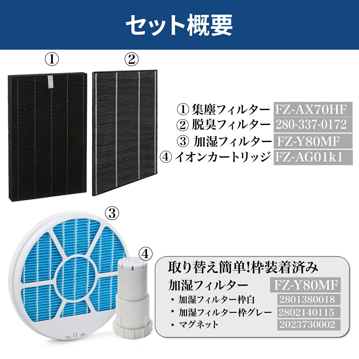 【★全店舗ポイント5倍】 シャープ 空気清浄機 フィルター FZ-AX70HF 集じんフィルター 280-337-0172 脱臭フィルター FZ-Y80MF 加湿フィルター (枠付き2802140094) FZ-AG01K1 Ag+イオンカートリッジ 加湿空気清浄機用 交換フィルター 4点セット