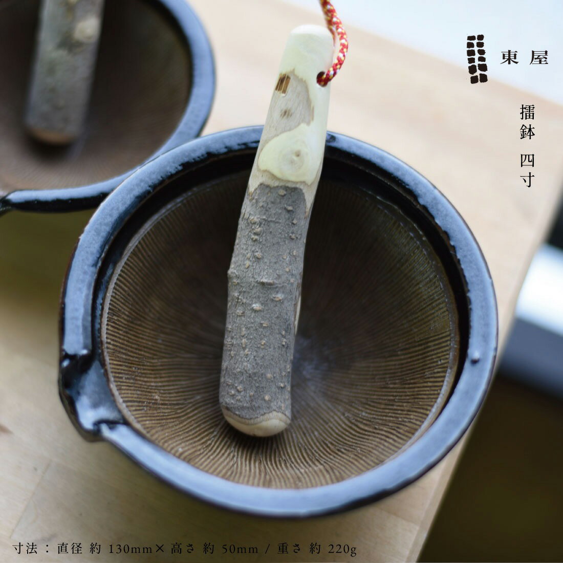 東屋/あづまや】擂鉢 四寸 手のひらサイズの擂鉢は 三重県伊賀の職人さんが ひとつひとつ、伊賀黄土を 手挽きして作られました。 胡麻や山椒、七味の他にも 離乳食やバジルペースト、 カレースパイスの調合など 使い道もたくさんあります。 かわいらしい見た目なので しまい込まずに飾ってみても◎。 寸法 直径:約130mm×高さ:約50mm重さ:約220g 素材 伊賀黄土 製造 耕房窯(三重県伊賀市) メーカー品番 AZKB00106 注意 陶磁器製品全般に、材質の特質上表面にごく小さなポッチやヘコミ、 僅かに黒っぽいドットなどがみられる場合がございますことご了承ください。 商品によってテーブルなどの上に置いた際、多少がたつく場合がございますことご了承ください。 商品のエッジ部分の釉薬のかかりが薄く、若干色が薄くなっている場合がございますことご了承ください。 イメージ写真について イメージ写真には、該当商品以外の撮影小物なども写っておりますが、それらの小物は商品には含まれておりません。 お間違いのないよう、ご注意くださいませ。 手工品の場合 商品がハンドメイドの場合、個体差が生じる場合がございますが、いずれも良品です。 色や形、2つとないハンドメイドの良さをお楽しみください。