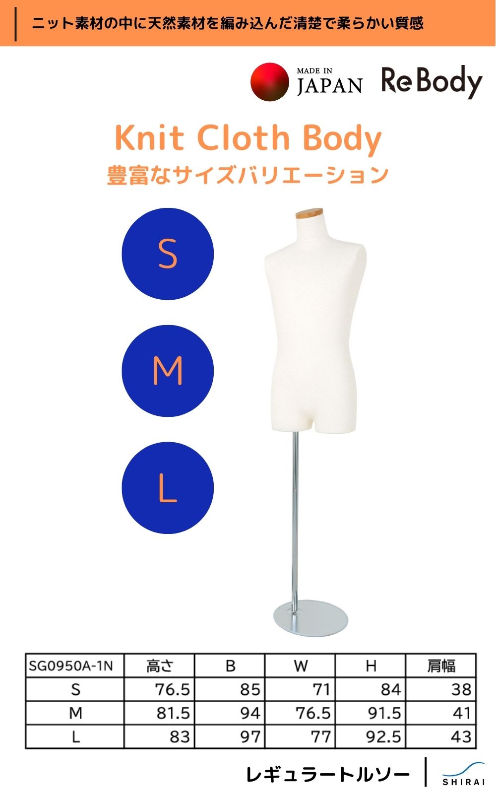 トルソー メンズ用 サイズバリエーション SML 7号 9号 11号 紳士 MEN‘S 腕無 芯地ニット 洋裁 日本製 Knit Cloth Body ディスプレイ 店舗什器 撮影用 SG0950A-1N 株式会社シライ ReBody