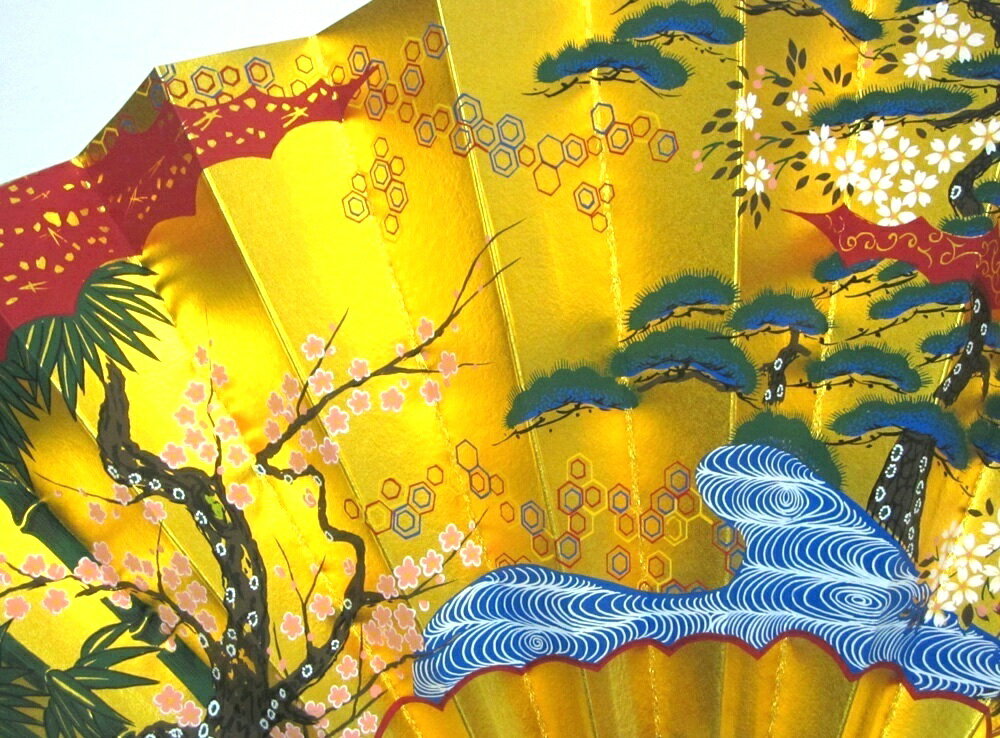 日本製 日本のお土産 日本の伝統飾り扇子 金地飾り扇子 日本扇子扇子 センス せんす金箔地黒骨 松竹梅(大)