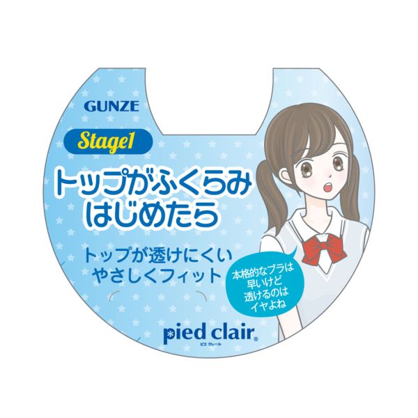 20%OFF【メール便(15)】 グンゼ GUNZE ピエ クレール pied clair ジュニアブラ ハーフトップ 胸2重パッド付 STAGE1 綿100% キッズ ジュニア 女の子 女児 140-160