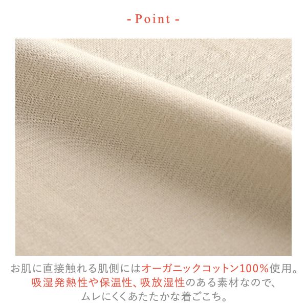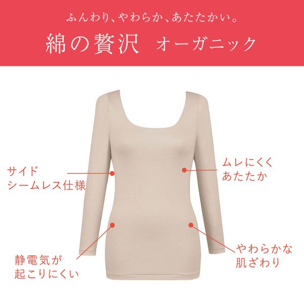 15%OFF【メール便(20)】 ワコール Wacoal ウイング Wing 綿の贅沢オーガニック 8分袖 あったかインナー 長袖 U首 肌側綿100% 吸湿発熱 レディース 全5色 S-LL