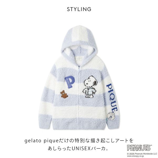ジェラートピケ レディース PEANUTS UNISEXオリジナルジャガードパーカ ジェラピケ パジャマ ルームウェア スヌーピー gelato pique ユニセックス 全2色 S-M-M-L
