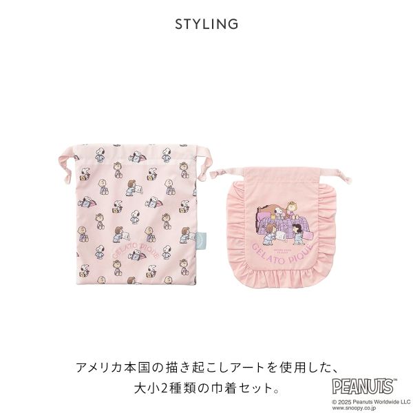 【メール便(10)】 ジェラートピケ PEANUTS オリジナルアート巾着セット ジェラピケ gelato pique スヌーピー 全3色