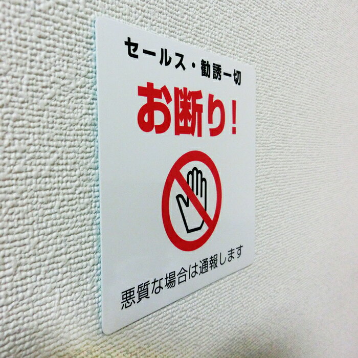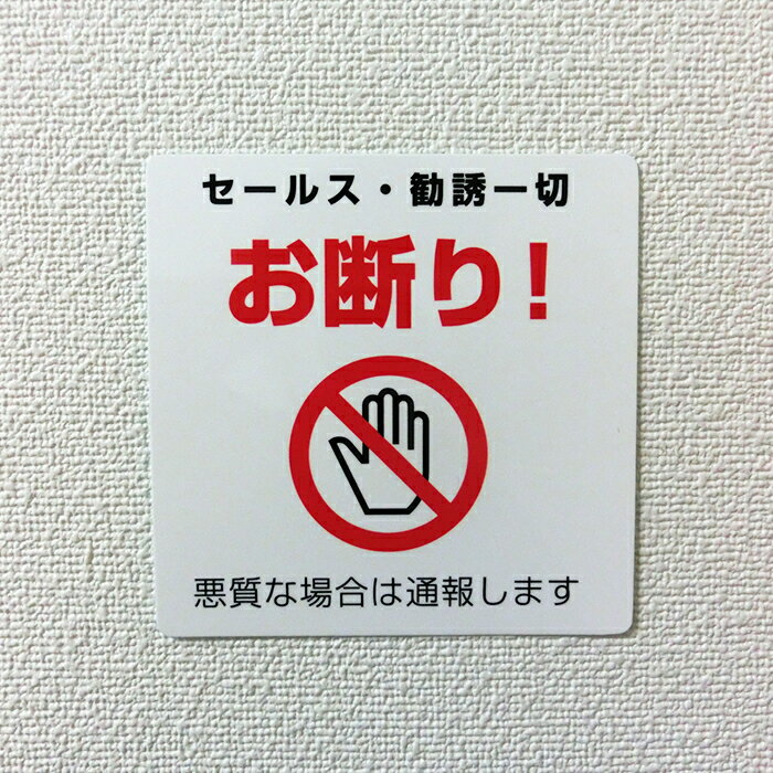 セールスお断りシールステッカー大型【20cm×20cm】勧誘禁止 通報 防犯防災 迷惑 営業 屋外 不審者 営業 訪問