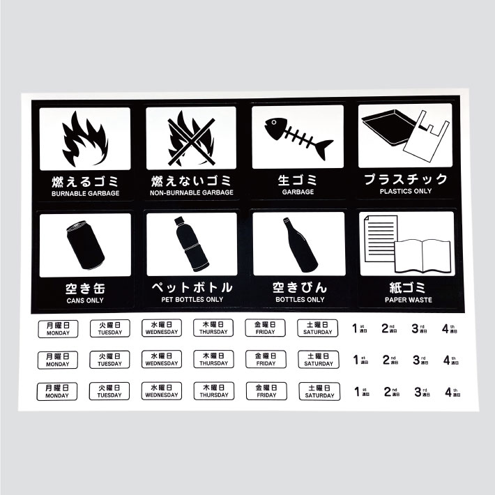 ゴミ分別用シールステッカー Sサイズ【6.5cm×6.5cm~1.5cm×1.5cm】