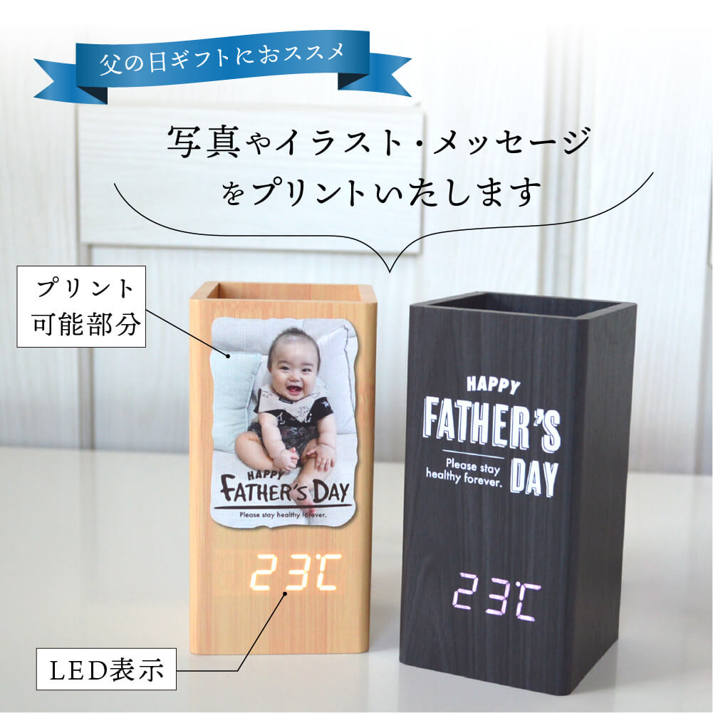 写真 メッセージが印刷できるLEDクロックペンスタンド 父の日 father's day 開店祝い ペン立て 時計 クロック LED 木製 ウッド 名入れ お名前入り メッセージ入り 写真入りプレゼント ギフト 記念 両親 家族 ナチュラルインテリア ナチュラルインテリア ラッピング無料