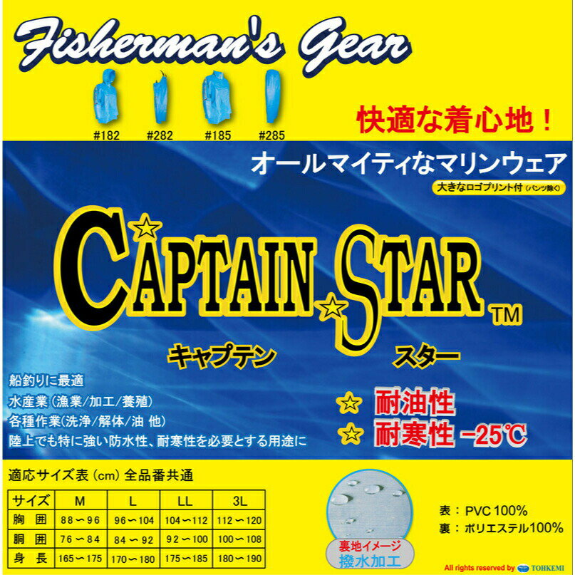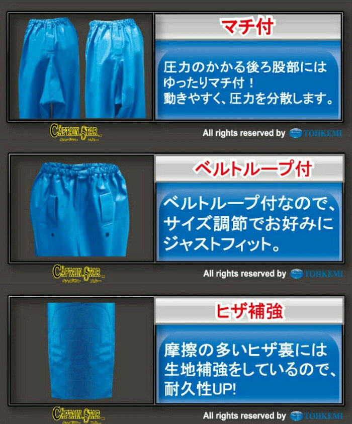 釣りや水産業に最適!耐油&耐寒素材を使用したレインパンツです。 TOHKEMI 285 キャプテンスターパンツ 【パンツのみ】 船釣り 水産業 合羽 雨合羽 レインウェア レインコート レインスーツ rev