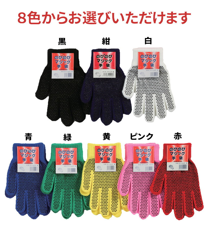 カチボシ No.145 のびのびマジック手袋 すべり止め付 【10双入】 のびのびによく伸びるので、こどもから大人まで使用が可能! スベリ止め手袋 カラー手袋 カラー軍手 こども軍手 こども手袋 イベント 運動会 遠足 rev