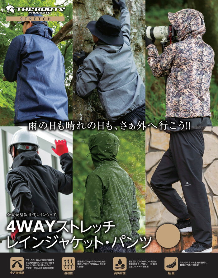 4WAYストレッチレインジャケット・パンツ 雨の日も晴れの日も全天候対応、ストレッチ生地を使用し動きやすい 耐水圧12000mm 透湿 防水 合羽 雨合羽 レインウェア レインコート レインスーツ rev