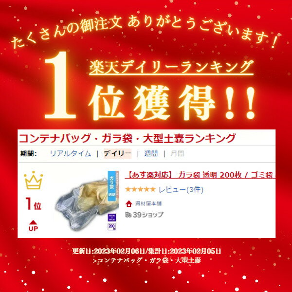 【最短翌日お届け】 ガラ袋 透明 200枚 / ゴミ袋 ごみ袋 工事現場 建築現場 リフォーム現場 DIY 資材保管 特大 大容量 破れにくい 強度 ポリプロピレン クリア 60cm×90cm ※ 厚手 土嚢袋 土のう袋 ではありません 送料無料