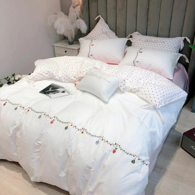 【送料無料】寝具カバーセット 上品 可愛い 柔らかい 4点セット 大人 子供 綿100% 二つ面使用 ダブル クイーン キング リボン フラットシーツ 掛けカバー 枕カバー 布団カバーセット 四季通用 きれいめ 柔らかい 通気性 抗菌防臭 洗濯可 プレゼント インテリア 寝室コーデ