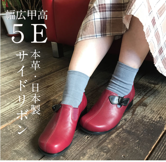 【最大30%OFFクーポン!20日】婦人靴 外反母趾 靴 5E おしゃれ 幅広 甲高 コンフォートシューズ ミセス ファッション 本革 レザー シンプル リボン かわいい レディース 痛くない 歩きやすい 靴ずれ シューズ サイドリボン u03
