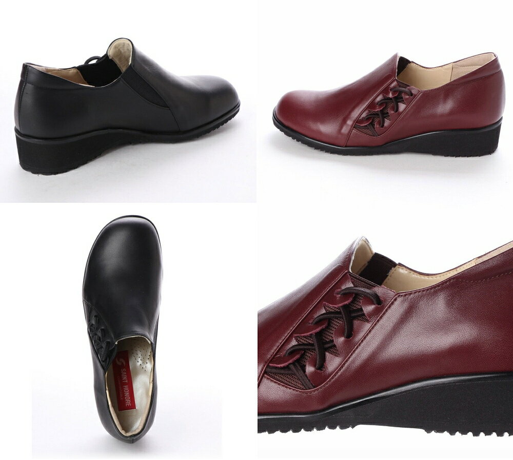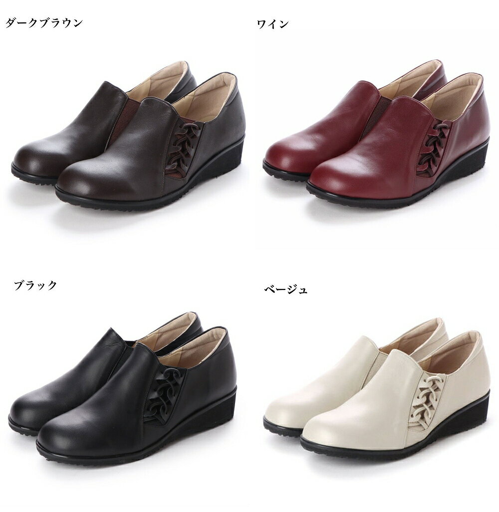 【送料無料】Saint Honore(サントノーレ)8100 5E 軽量コンフォートシューズ サイドゴア ブラック/ダークブラウン/ワイン/ベージュ ゴム カジュアル 約3.5cmソール ウエッジ 日本製 ゆったり 幅広